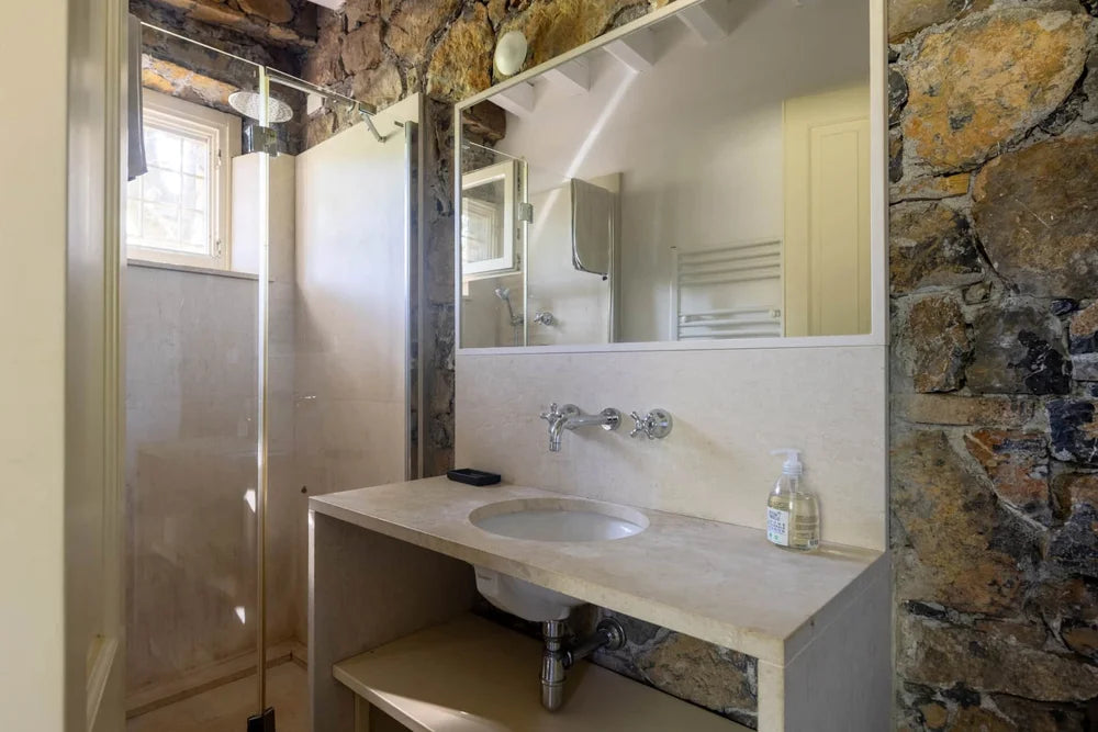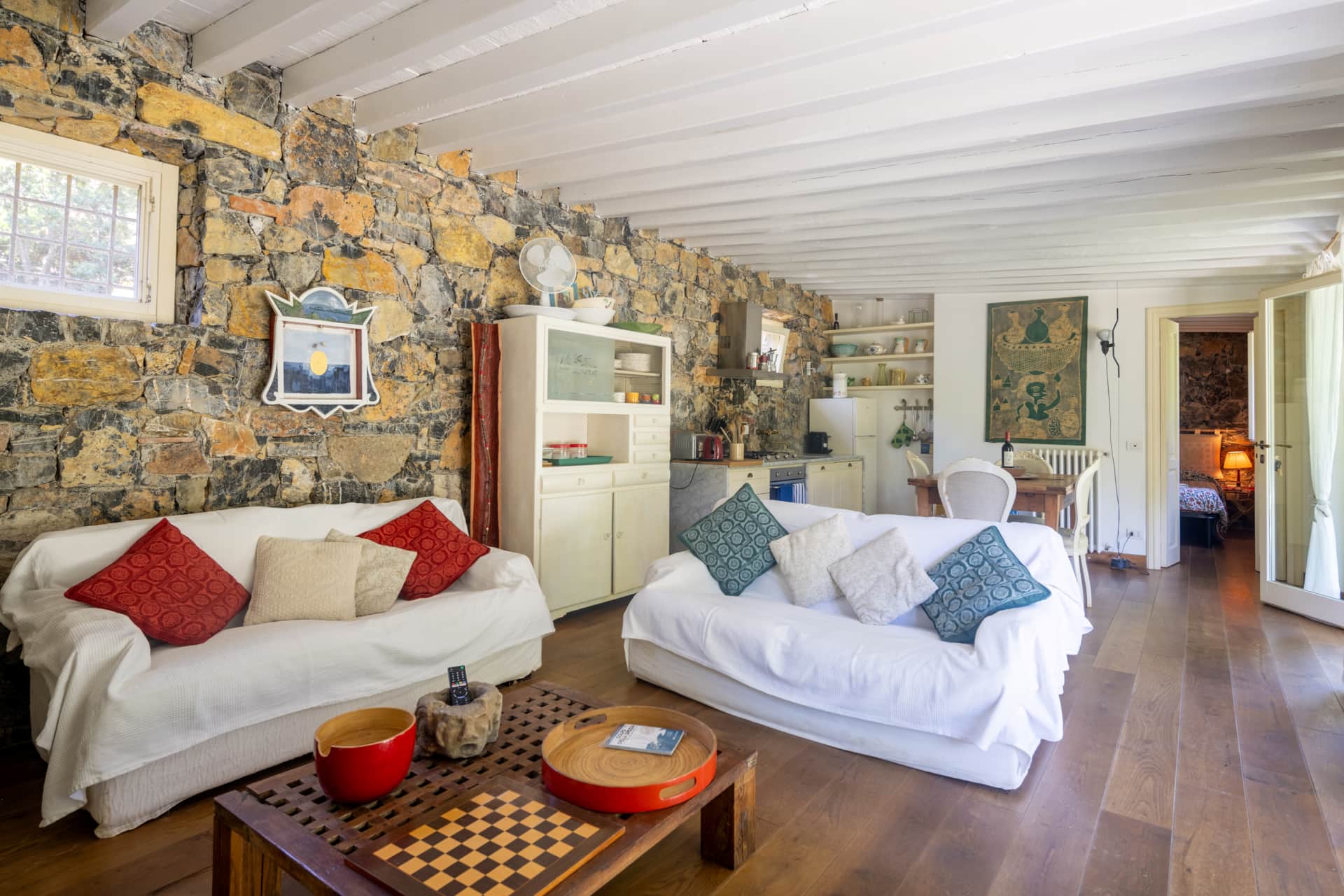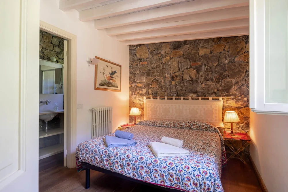 Dolinetta is a single-level stone house converted from an old stable, combining rustic charm with characterful details. The two bedrooms, each with its own en-suite bathroom and shower, are located on opposite sides of the living area.