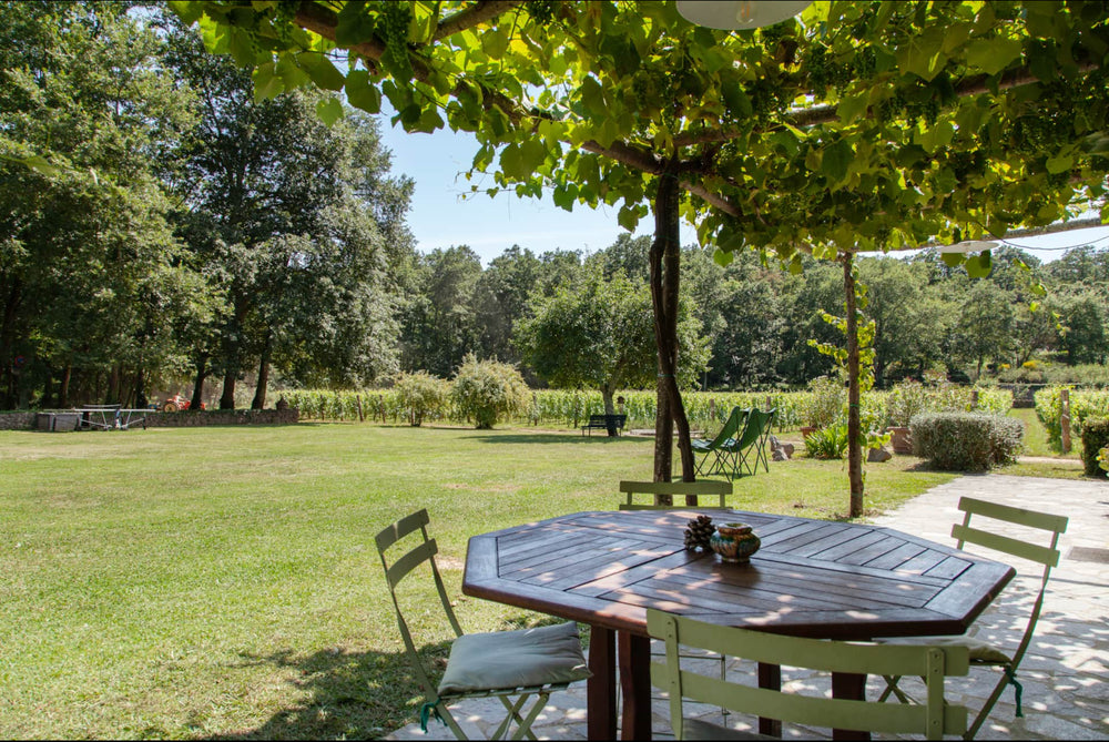 In front of the house you will find a lawn with views of our main vineyard, surrounded by oak woodland. A strip of Mediterranean scrub separates Dolinetta from the neighbouring house, preserving the privacy of the outdoor space.