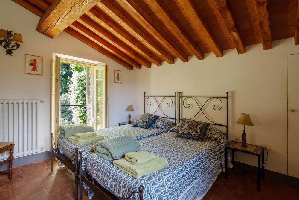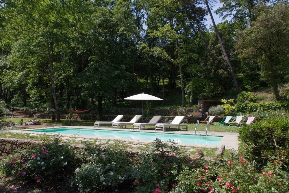 This stone house, nestled in the cool shade of oak trees, comfortably hosts up to six guests. In the terraced garden you will find a private pool integrated into the natural slope of the land (which can be heated by 2–3 degrees during the day if needed).